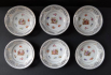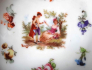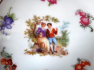 White porcelain, gilt. Round shape. Raised edge pierced with gold lines and embossed festoon. Amid the golden circle motif gallant scenes and small flowers around. In each bowl a different romantic scene. Unsigned. Central Europe in 1890 - 1930. The diameter of the bowl 22.5 cm and a height of 6 cm diameter dish of 13 cm and height 3.5 cm.