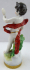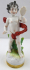 White, hand-painted, colored and gilded porcelain. Aelteste Volkstedter Porcellanmanufaktur. Standing naked boy with a strip of flowing red cloth tied with a gold band around his hips. Viewing himself in a small mirror held in his left hand. Tall arched pedestal with green foliage and gold ornamental lower band. Marked from below : blue braided letters with crown. Germany 1915 - 1935. Height 16 cm.
