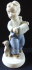 White and colored porcelain. Statuette of a standing boy playing the accordion, with a white cap and handkerchief, at the feet with a sitting dog. Round base, with hairline crack from production. Marked from below - green printed mark Made in Czechoslovakia, embossed numbers and letters. Dux, Duchcov, Czechoslovakia since 1945. Height 17 cm.