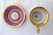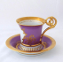 White, painted, gilded porcelain. Empire style. Hand painted miniature of the famous ballerina Fanny Cerrito in the ballet Alma from 1842. Francesca " Fanny " Cerrito ( 1817 - 1909 ) : famous Italian ballerina and dancer. Hand-painted figure of the ballerina framed by a gold cartouche on a purple background. Marked bellow : handwritten in black - Fanny Ceritto, Alma, Haas & Czjzek, Hand painted, monogram of the painter L. K. , letter S and crown. Custom handmade by the Slavkov porcelain factory. Czechoslovakia at the end of the last century. Height of cup 10,5 cm, diameter of saucer 16 cm.