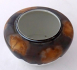 White, colored, glazed porcelain. From the period of the German Art Nouveau. Bowl round, closed shape, with arched upper part, annular upper edge. Decorated, in the upper half, with flowing brown iridescent decor. Marked from below - embossed letters C. W. and crown, letters V. G., numbers, indistinct blue mark (Wilhelms Feider Jaspis). Germany, the first third of the last century. Height 9.5 cm, width 16.5 cm.