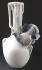 White porcelain, painted, glazed. Vase at the bottom of the spherical shape, with a low base. Narrow, long neck. Decorated with the relief motif of the tendrils, passing to the top of the vase. On the right, in the middle, sitting statuette of the ornamental pigeon. In Art Nouveau style. Marked from the bottom - Metzler & Ortloff, Ilmenau. Germany 1900 - 1920. Height 22 cm, width 10,5 cm.