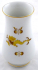 White, coloured, hand painted and gilded porcelain. In Chinese style. Small conical vase with golden lines. Decorated with a stylized painted yellow and light brown ornament with a Chinese dragon. Marked below : blue crossed swords, impressed numbers, red painted painter's numbers. Germany last century. Height 11 cm.