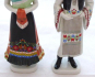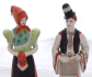White, coloured and painted porcelain. A statuette of a young man standing in traditional Hungarian costume with a hat. Figurine of a standing girl in traditional Hungarian costume with red scarf. Marked from bellow : in green Hollhaza, Hungary, 1831, 20. , Kezzel Festett, impressed number 31. , painted painters marks. Hollhazi manufactory, Hungary 1979 - 1985. Height 31 cm and 30 cm.